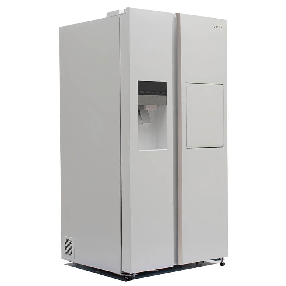 ساید بای ساید اسنوا SN8-2035GW، کد قدیم S2D-L310-W، دارای فیلتر تصفیه آب، نمایشگر LED، هومبار، موتور اینورتر دیجیتال، آبریز و یخساز خودکار و قفل کودک است.