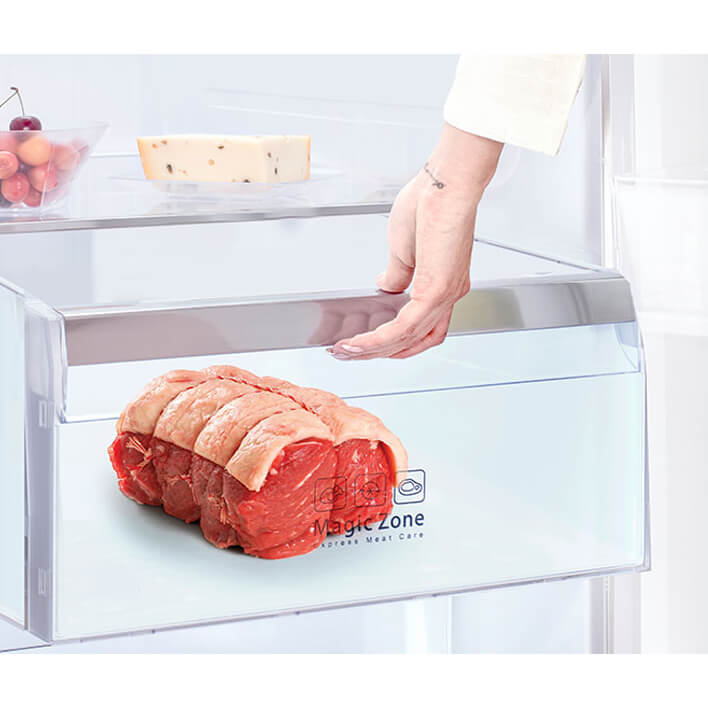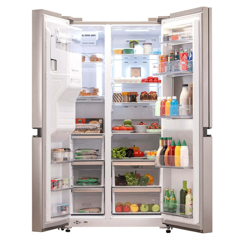 یخچال فریزر ساید بای ساید 0034 دوو مجهز به درب سوم و هوم بار با سامانه سرمایش فلزی است. این سیستم از هدر رفت سرما جلوگیری کرده و تازگی و کیفیت مواد غذایی را حفظ می کند. برای نگهداری گوشت تازه می توانید از محفظه ویژه تعبیه شده در ساید بای ساید دوو D4S-0034MW استفاده کنید. دما در این محفظه 4 درجه سانتی گراد بوده که می تواند گوشت تازه را تا 6 ساعت، سالم نگه دارد.