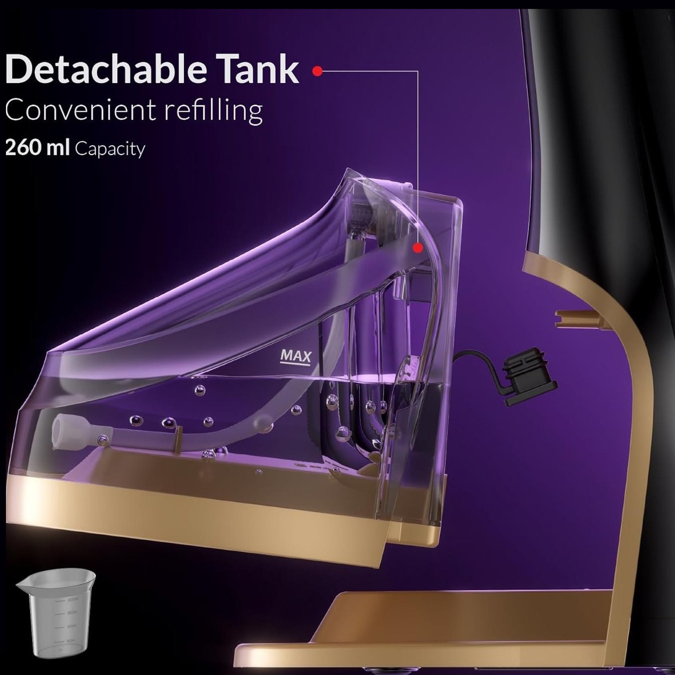 یکی از اجزای مهم بخارگر GS200 فلر، مخزن آب شفاف جدا شونده با ظرفیت قابل توجه 1.6 لیتر است که زمان کار طولانی تری را بدون نیاز به پر کردن مجدد فراهم می آورد. این دستگاه میزان بخار مداوم 25 گرم در دقیقه تولید می کند که برای صاف کردن سریع و مؤثر چروک لباس کافی است. جنس کفی این بخارگر از سرامیکی Prime Gold است و تماس ایمن با پارچه ها را تضمین می کند.