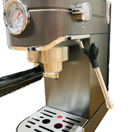 در قسمت جلوی اسپرسوساز مباشی مدل ECM-2030 یک گِیج فشار تعبیه شده که فشار روی قهوه را به شما نشان می دهد و در تشخیص میزان پودر و یا ریزی و درشتی آن به شما کمک می کند. به طور خلاصه اگر آب از پودر قهوه به سختی عبور کند (به علل مختلف مانند پودر خیلی ریز، تمپ زیاد پودر و یا حجم بالای پودر)، عقربه گِیج به سمت بالا رفته و اگر آب به راحتی عبور کند، درجه کمتر حرکت می کند. گفتنی است که بهترین درجه برای عقربه، قسمت خاکستری گیج است؛ در صورت بالا رفتن مشکلی ایجاد نمی کند اما به دستگاه فشار آورده و از عمر آن می کاهد.