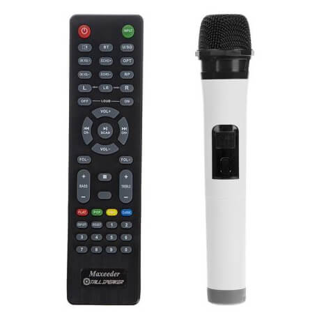 رنگ مشکی و طراحی بی نظیر دو تکه ی اسپیکر مکسیدر IR51 جلوه خاصی به دکوراسیون منزل شما می بخشد و به شما این امکان را می دهد تا از آن در دو نقطه مختلف از سالن خود استفاده نمایید. همچنین از کیفیت صدای بسیار رسا با وضوح بالا بهره مند است و به همراه یک میکروفون بی سیم ارائه می شود.