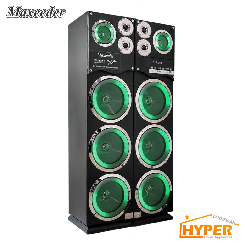 ۶ ساب ۱۰ اینچ ۲ میدرنج-۲ تیوتر – چراغ دار با اپلیکیشن هوشمند – نمایشگر رقص نور با نور پردازی جدید و قوی – رنگ مشکی شاین – رینگ و دیسپلی رز گلد – ساب ووفر (نسل جدید) – کارائوکه – بدنه 16 میل MDF – میکروفون بیسیم – خروجی تصویر – پشتیبانی از فرمت پخش MP5 – نمایشگر فول تاچ دیجیتال ۸ کلید – رادیو FM