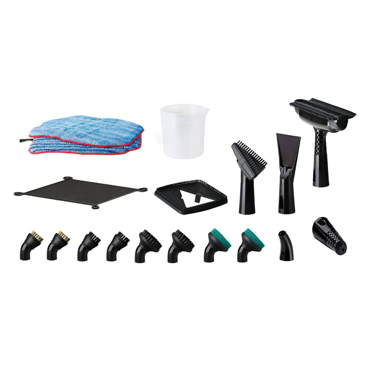 کیف لوازم جانبی، کفی زمین شوی، فرچه فلزی و مویی، پیمانه، سری شیشه شوی، حوله، فرچه اسکاچی |