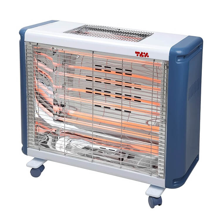 نصب بر روی زمین – دارای فن – دارای 6 المنت (4 عدد جلو و 2 عدد سقف) – برق ورودی 220 ولت – ولوم تنظیم کننده درجه حرارت – لامپ نشانگر – پایه ثابت و بدون چرخ – دارای ترموستات – تنظیمات حرارت 600/1200/1800/2400/2800 وات – سیستم قطع خودکار (ایمنی در صورت واژگونی) – کنترل یک المنت جلو با ترموستات – انتقال گرما بصورت جا به جایی و تابشی – جهت جریان گرما به سمت جلو و بالا – دارای 4 کلید برای المنت های جلو، بالا و پایین، المنت سقف و فن |