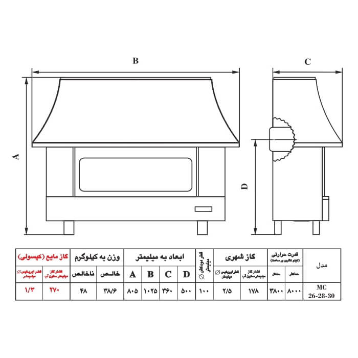 بخاری گازی شومینه ای نیک کالا MC28 مدل زرین