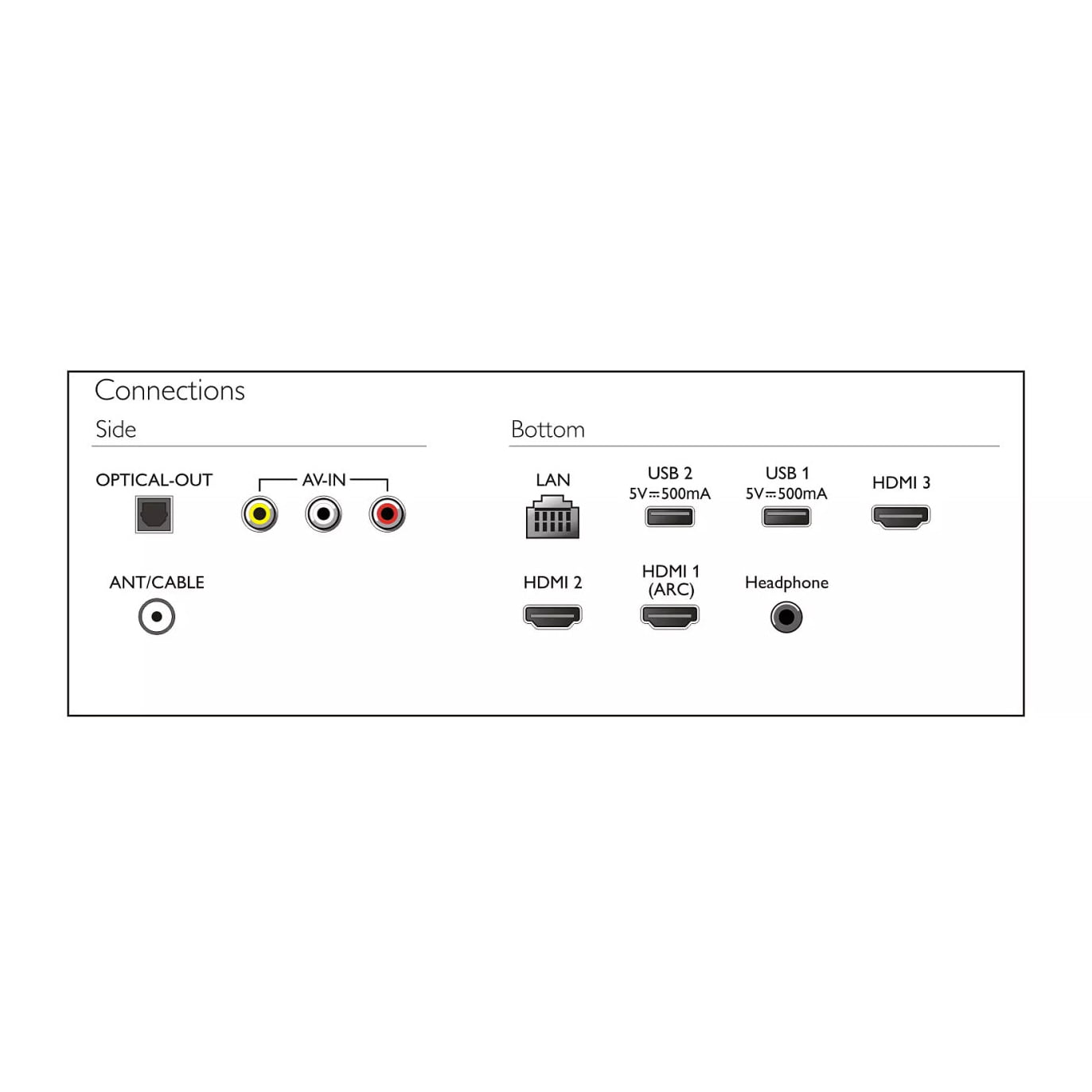 2 درگاه‌ USB – دارری 3 درگاه HDMI – کامپوزیت