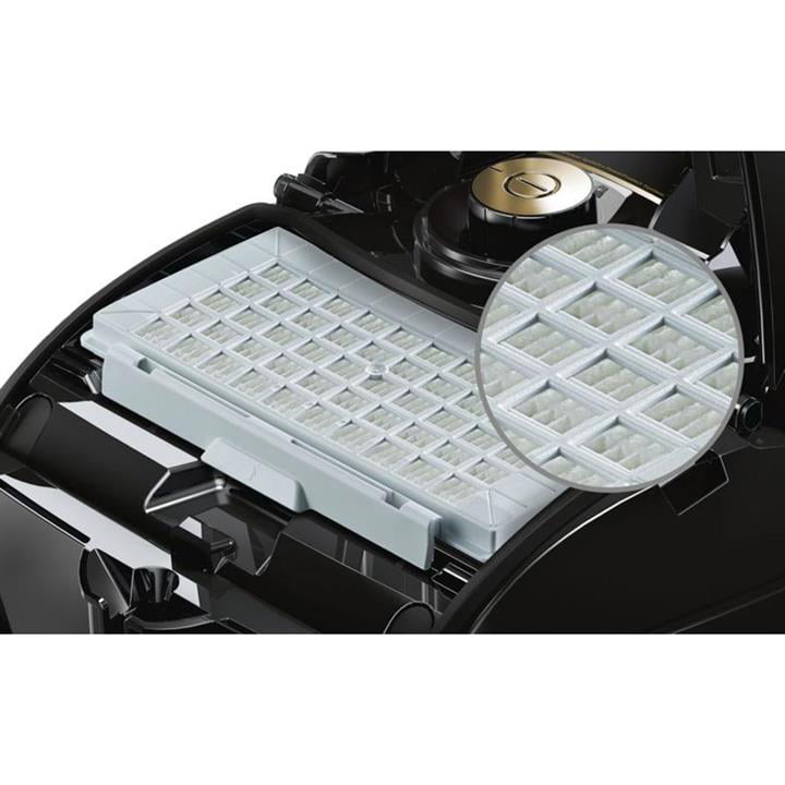دارای دسته ارگونومیک – دارای کنترل مکش الکترونیکی – ویژگی های مختلف نگهداری و پارک آسان – کلاس عملکرد تمیزکنندگی روی سطوح سخت A- هشدار دهنده تعویض کیسه گردوغبار – سیستم AirBumper (برای محافظت از مبلمان و دیوار) – بدنه نرم برای حفاظت از سطوح حساس – سیستم Quattro Power تمیزی فوق العاده با کمترین مصرف انرژی – سیستم Power Protect نهایت تمیزکنندگی حتی در زمان پر بودن کیسه – سیم جمع کن خودکار – پاکت از نوع G ALL به ظرفیت XXL |
