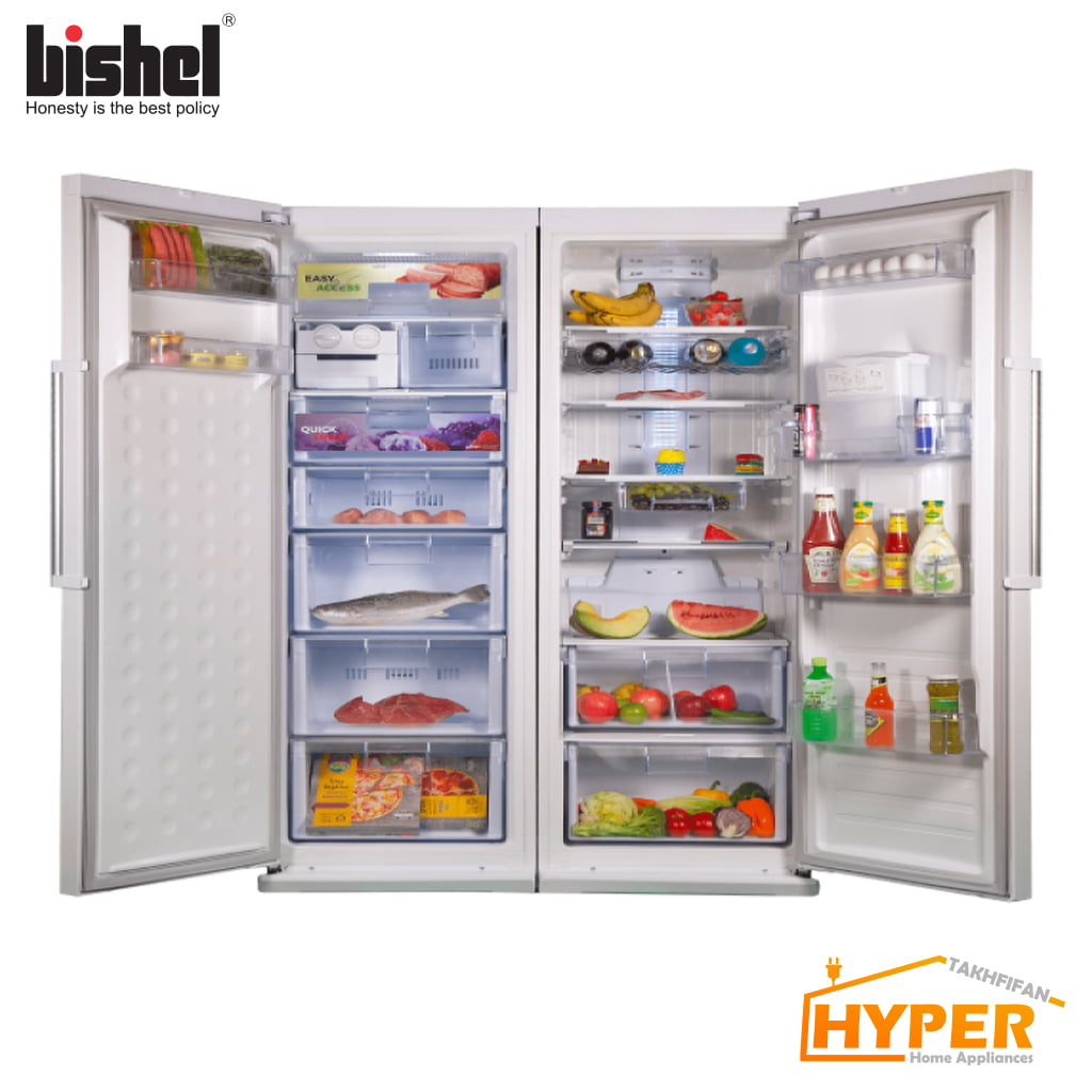 یخچال فریزر دوقلو بیشل BL-RT-103-104IW دارای دو درب، به رنگ سفید، مجهز به نمایشگر، با ابعاد 120 × 63 × 180 cm و گنجایش خالص 607 لیتری (22 فوتی) طراحی و روانه بازار شده است.