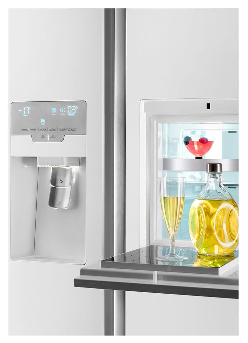 در یخچال های نسل جدید اسنوا بخشی به نام بار خانگی تعبیه شده تا امکان دسترسی آسان به فضای داخلی یخچال را فراهم کند. تکنولوژی هوم بار در ساید بای ساید اسنوا S8-2320GW باعث شده تا از هدر رفت بی رویه سرمای یخچال جلوگیری شود. بنابراین این گزینه نیز می تواند نقش مهمی در کاهش مصرف انرژی دستگاه داشته باشد.