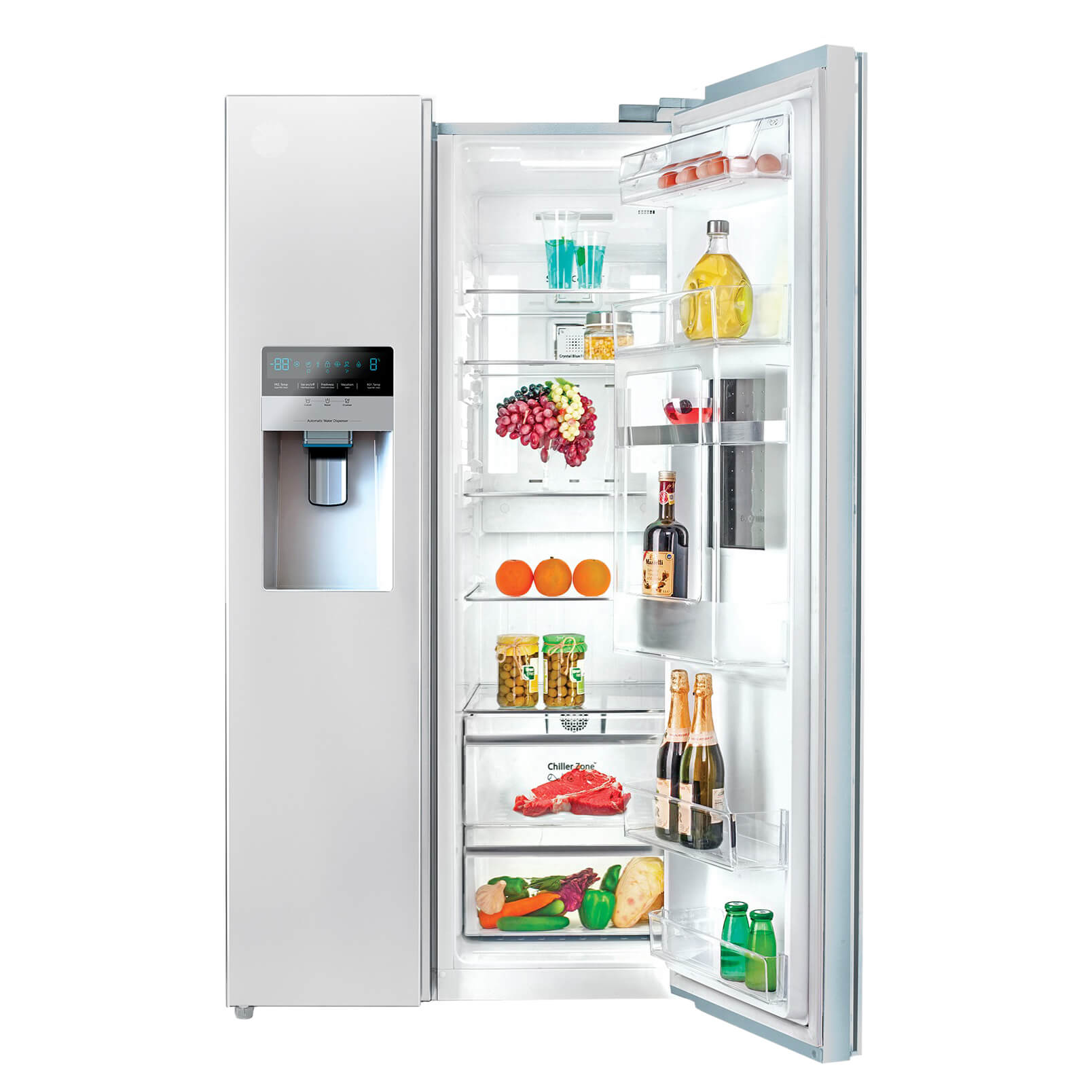 برای آنکه لازم نباشد که بطور مداوم درب یخچال را برای نوشیدن آب باز نمایید، در یخچال ساید بای ساید 32 فوت اسنوا مدل 2323 بخش آبسردکن اتوماتیک طراحی شده است. بخش بار خانگی با سامانه آرام باز شو (دیسکی) امکان دسترسی آسان و سریع به نوشیدنی و خوراکی های داخل یخچال را فراهم می نماید. بنابراین این ویژگی نیز می تواند به نوبه خود در کاهش مصرف انرژی تاثیر گذار باشد.