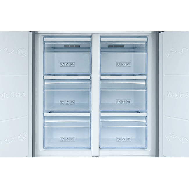 یخچال فریزر ساید بای ساید ایکس ویژن TF540-AMD در قسمت یخچال خود، دارای 3 طبقه شیشه ای مقاوم به همراه دو کشوی بزرگ می باشد. همچنین وجود 6 کشوی بزرگ کریستالی در قسمت فریزر آن، این امکان را به کاربر می دهد تا بتواند محصولات خود را بدون این که نگران کمبود فضا باشد، در آن جای دهد.