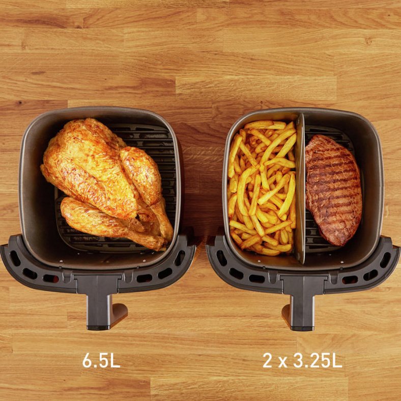 سرخ کن تفال مدل EY 801 به تکنولوژی Extra Crisp مجهز است و به شما امکان پخت یکنواخت غذا با کاهش ۹۹ درصدی روغن را می دهد. این سرخ کن با ظرفیت 6.5 لیتر (8 نفره) انتخابی ایده آل برای جمع های خانوادگی و دورهمی ها به شمار می آید و امکان پخت انواع سبزیجات، سیب زمینی سرخ شده، ناگت، مرغ سوخاری، پیتزا، گوشت، ماهی و دسر را برای شما فراهم می کند.