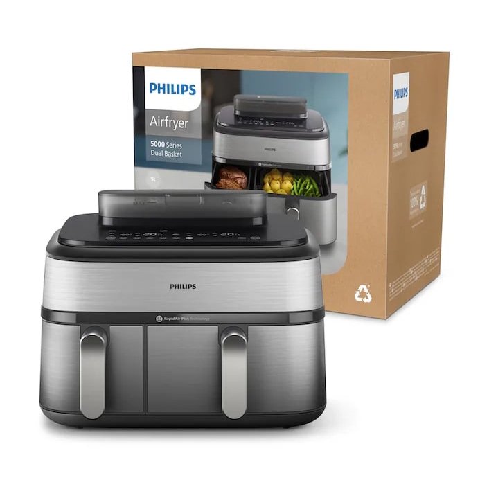 سرخ کن دوقلو فیلیپس NA555/09 یکی از پیشرفته ترین و جدیدترین محصولات شرکت فیلیپس Philips است که با ظرفیت بالای خود برای مهمانی و دورهمی ها و یا خانواده های پرجمعیت 7 نفره طراحی شده و می تواند به عنوان یک دستیار عالی در طبخ انواع غذاهای لذیذ و پخت کیک های خوشمزه به کاربر کمک کند. این مدل بدنه ای از جنس استیل و پلاستیک دارد و با رنگ جذاب استیل نمای بسیار زیبایی به آشپزخانه شما می بخشد. از طرفی قیمت سرخ کن دوقلو فیلیپس NA555/09 نیز در مقایسه با امکانات فراوان آن بسیار اقتصادی و مناسب بوده و این دستگاه را به گزینه ای فوق العاده برای آشپزخانه های مدرن تبدیل می کند.