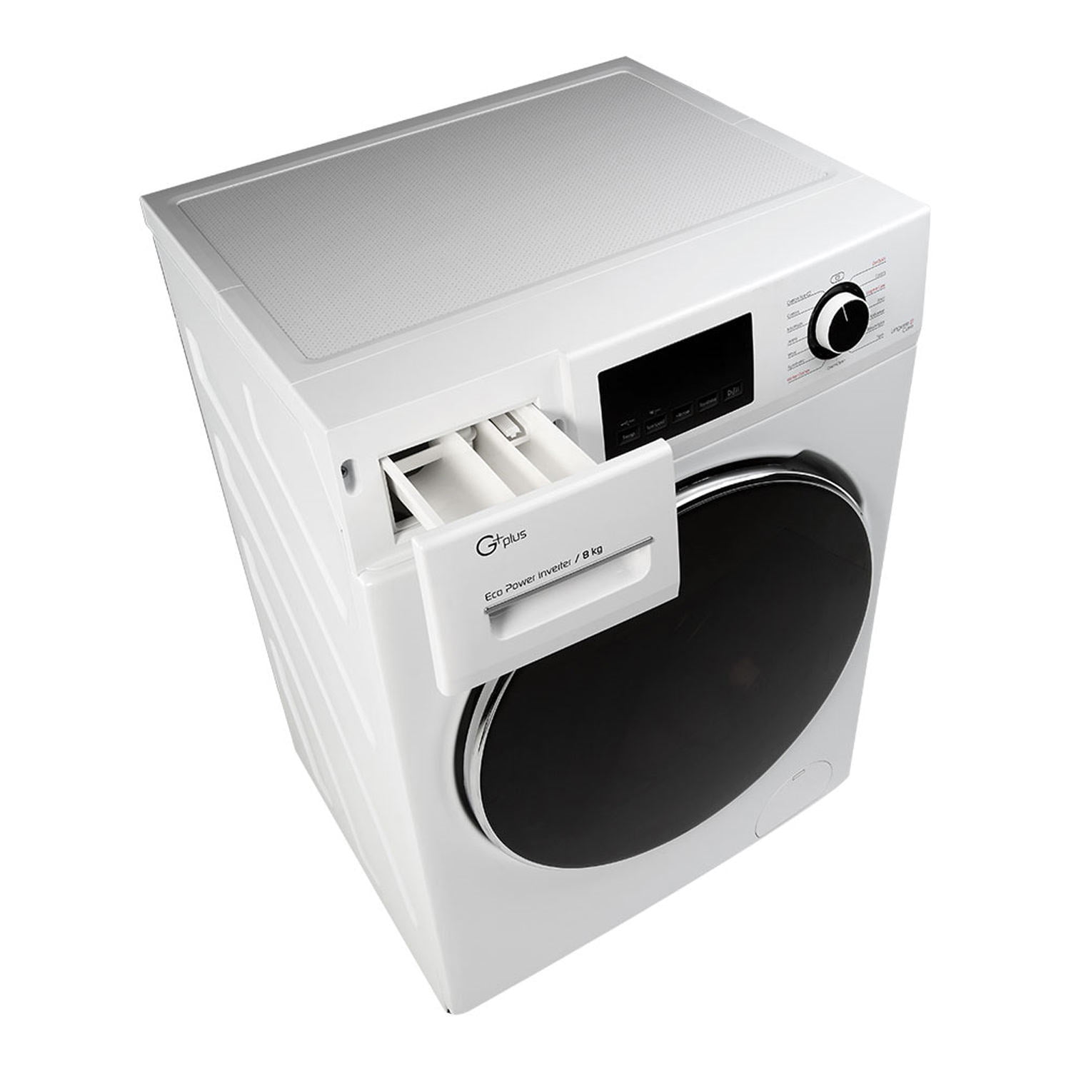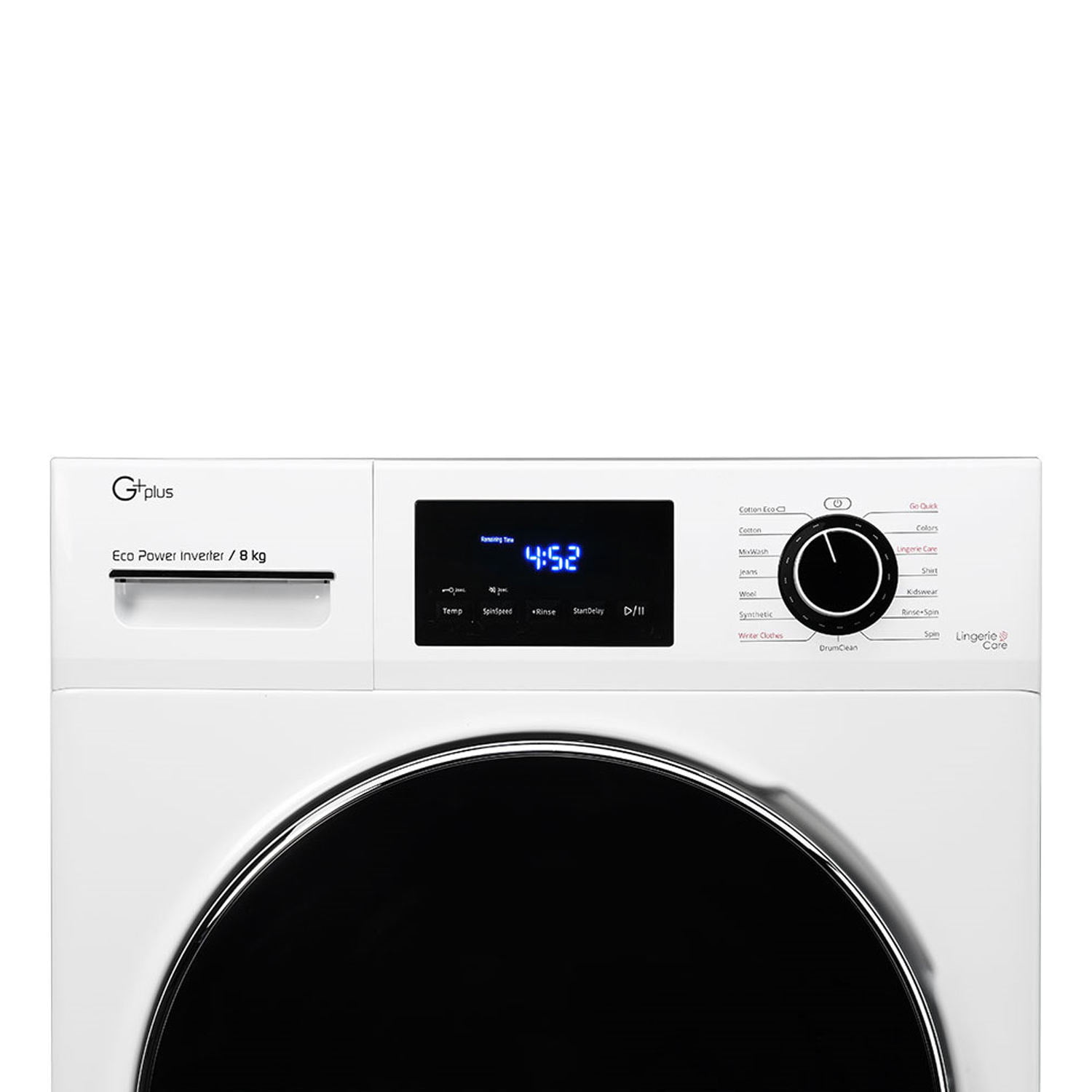 لباسشویی جی پلاس GWM-K844W نوع درب از جلو، به رنگ سفید، دارای 16 برنامه شستشو، با ابعاد 58 × 60 × 85 cm و ظرفیت 8 کیلوگرمی مناسب خانواده هایی با جمعیت متوسط و زیاد است.