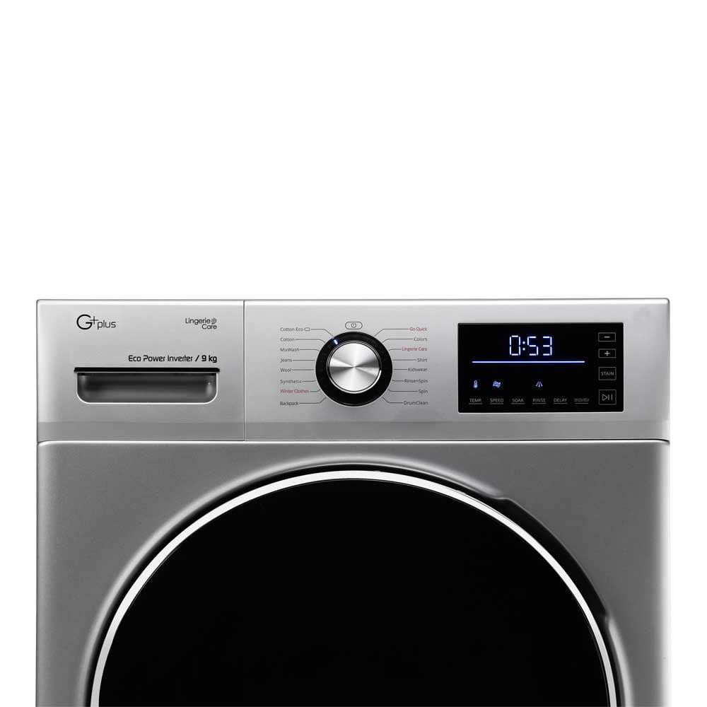 لباسشویی جی پلاس GWM-K945S دارای ظرفیت 9 کیلوگرم می باشد و از موتور هوشمند BLDC و استفاده از تکنولوژی ECO Power Inverter برخوردار است . تکنولوژی اینورتر این موتور به کاهش مصرف برق کمک میکند ، همچنین صدا و لرزش کمتری دارد که از مزایای این موتور هوشمند می باشد که سبب طول عمر بیشتر محصول میشود .