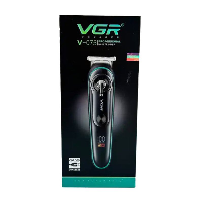 ماشین اصلاح وی جی آر V-075 مجهز به باتری لیتیوم یون قابل شارژ، شارژ کامل در عرض 2 ساعت، نمایشگر LED، تیغه استیل ضد زنگ و قابلیت خط زن می باشد.