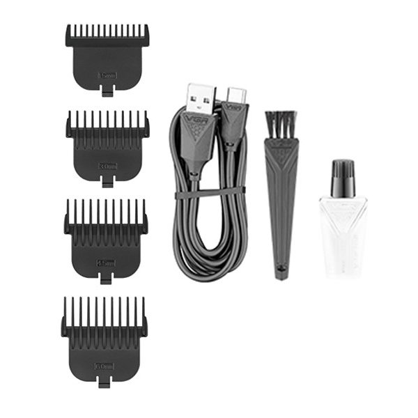 ماشین اصلاح وی جی آر V-972 مجهز به تیغه استیل ساخته شده با فرآیند متالوژی پودری، باتری لیتیوم یون با 2 ساعت شارژ و 180 دقیقه مدت کارکرد و چهار عدد شانه می باشد.