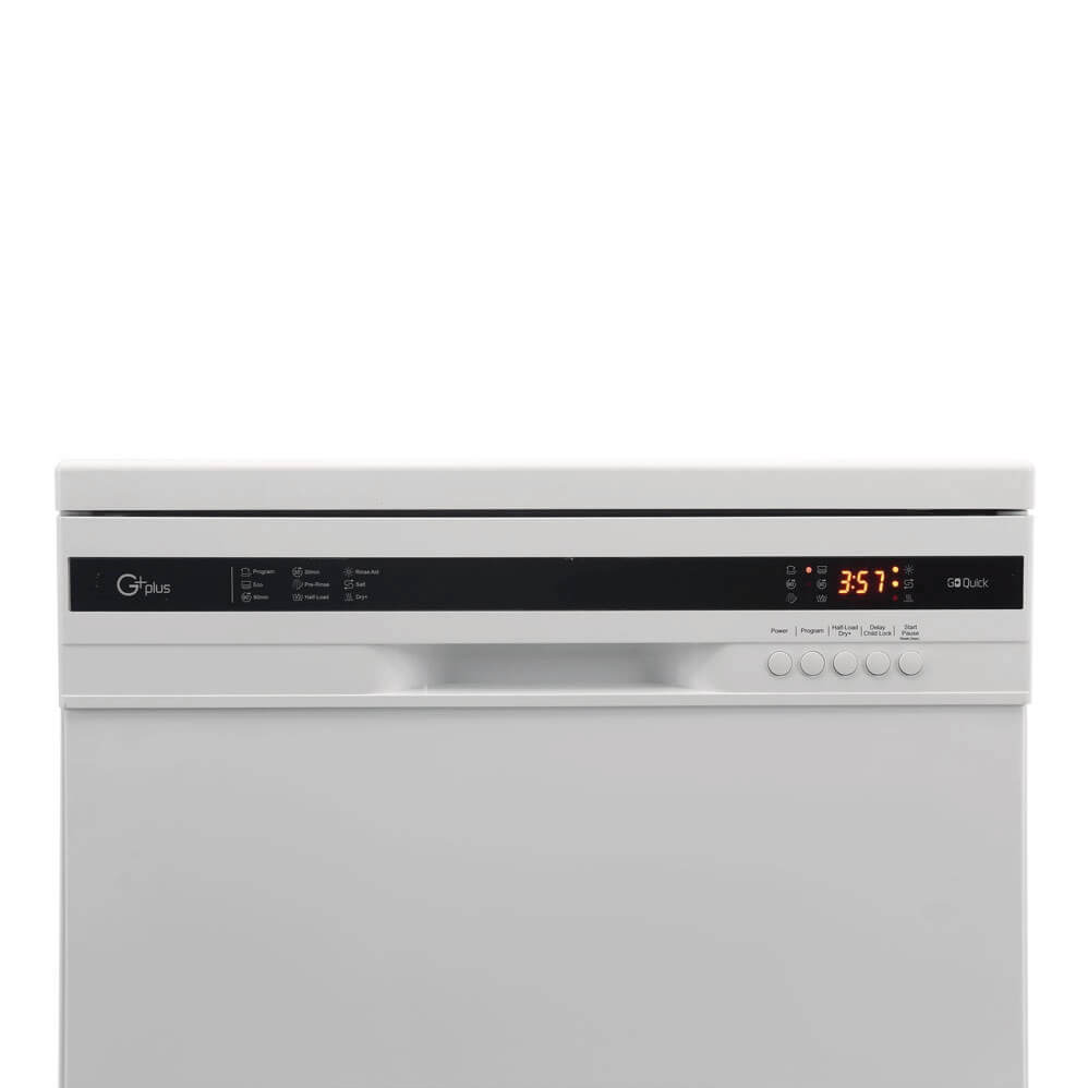 ماشین ظرفشویی جی پلاس GDW-N1362W دارای 5 برنامه، قفل کودک، نمایشگر LED، تاخیر در شستشو، انرژی ++A، خشک کن، مصرف آب 11 لیتر، نمایشگر اتمام نمک و مایع جلا دهنده است.