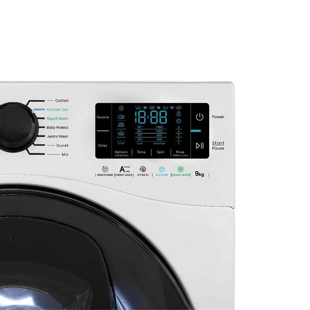 سری واش این واش Wash in Wash – نمایشگر مشکی – کنترل پنل سفید – دور خشک کن قابل تنظیم – درام الماسه – فناوری نانو سیلور – سیستم ضد چروک، اتوکشی آسان – شروع شستشو با تاخیر – سیستم چرخش آب – دارای ولوم انتخاب برنامه – پیش شستشو – شستشوی اقتصادی – شستشوی سریع – برنامه شستشوی البسه نخی پنبه ای، کودک، پشمی، کاموایی، حریر و ظریف، ورزشی و بیرون، پیراهن و تیشرت، جین، روتختی و تکه‌ های بزرگ و لباس‌های زیر – ضد حساسیت – سیستم گرم کننده Nickel Diffusion – امکان ادامه شستشو در صورت قطع برق – آبکشی شرعی – سیستم بالانس اتوماتیک البسه – تکنولوژی محافظت از موتور S-Guard Tech