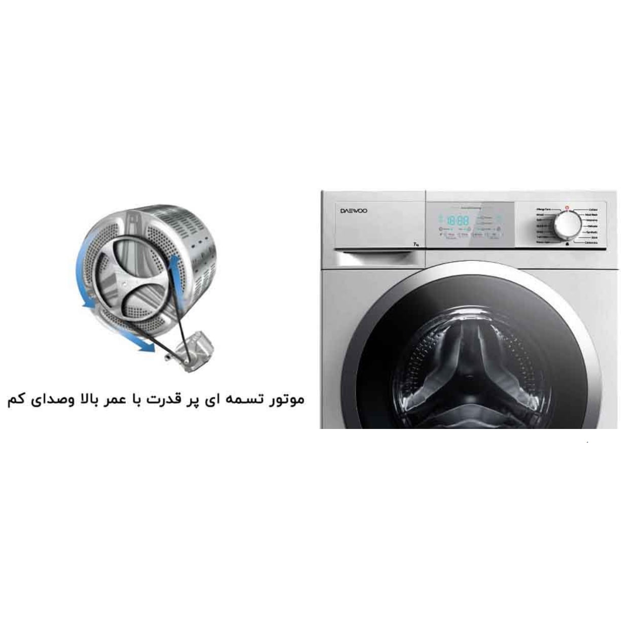 وجود پنل نمایشگر LED بر روی بدنه ماشین لباسشویی دوو DWK-7103، شما را از کلیه برنامه ها و تغییرات داده شده به دستگاه مطلع می سازد.