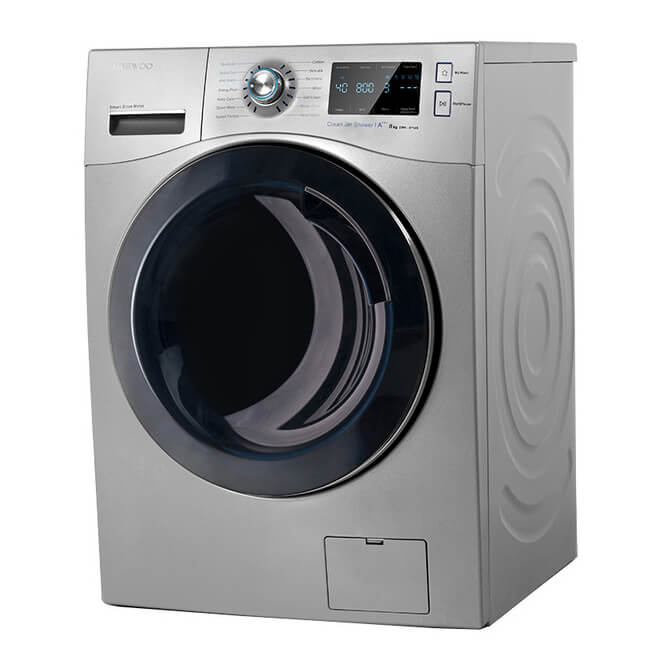 ماشین لباسشویی دوو DWK-PR880S، کد قدیم LM-880S، دارای موتور دایرکت درایو، 14 برنامه، سیستم حباب ساز و نانوسیلور، فناوری I-Potector، عیب یاب و قفل کودک است.