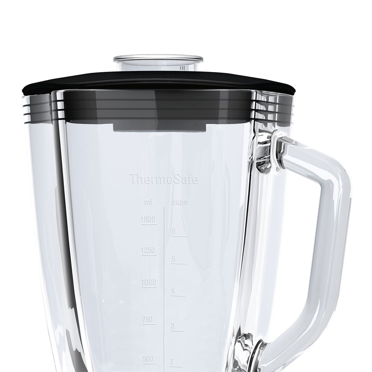 کارکرد تک کاره – کنترل چرخشی – شیشه ThermoSafe مقاوم در برابر دما برای آماده سازی ایمن انواع سوپ های داغ و نوشیدنی های سرد – تیغه Easy KlickKnife برای برش، خرد کردن و ترکیب دقیق با نظافت آسان – پایه لاستیکی برای ثبات بیشتر دستگاه – قابلیت شستشوی قطعات در ماشین ظرفشویی – مناسب برای خرد کردن یخ و میوه های یخ زده – عملکرد قدرتمند موتور بی صدا دستگاه به لطف سیستم SilentMixx – پارچ مخلوط کننده شیشه ای مقاوم در برابر تغییرات دما |
