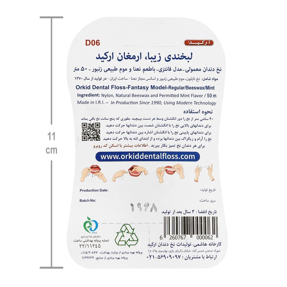 نخ دندان ارکید معمولی فانتزی از مواد مرغوب و مقاوم ساخته شده و دچار پارگی حین استفاده نخواهد شد و بطور موثری به حذف مواد غذایی باقی مانده بین دندانی کمک می کند.