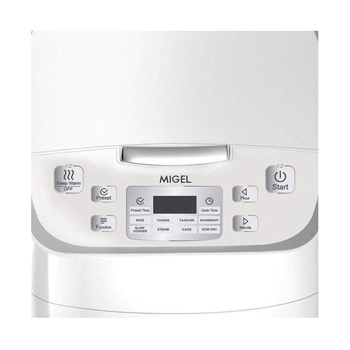 گنجایش پخت به نفر: 4 تا 6 – دارای 8 برنامه پخت – قابلیت تنظیم میزان برشتگی تهدیگ: 3 درجه – دارای پخت با تاخیر- دارای گرم نگهدارنده – جنس و پوشش دیگ: آلومینیوم با روکش نچسب تفلون- دستگیره حمل دیگ – دارای سبد بخارپزی – پوشش جداشونده درب جهت شستشو – دارای پایه – مجهز به دستگیره برای جابهجایی آسان- قابلیت پخت برنج، آرامپز، تهدیگ، بخارپز، تهچین، کیک، خورشت، سرخکنی، پخت تاخیری و گرم نگهداری |