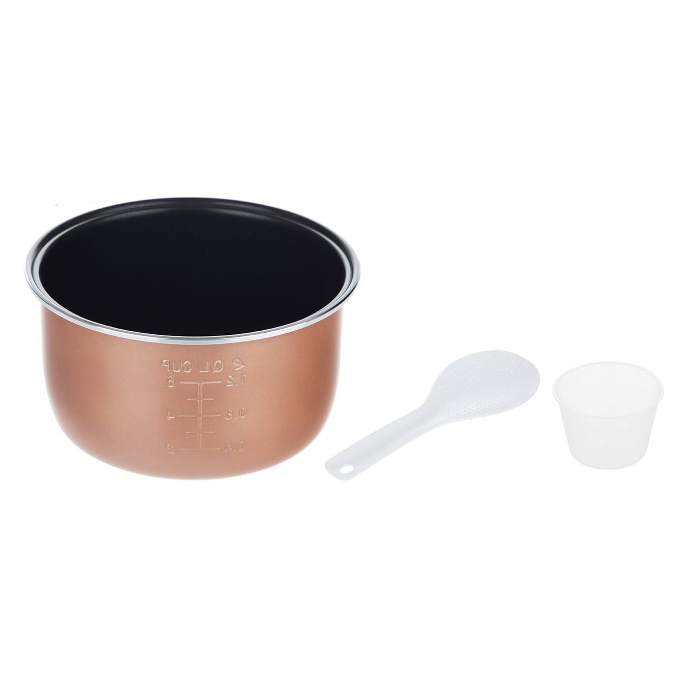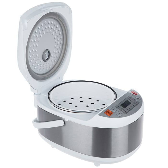 دارای نمایشگر دیجیتال – طول سیم 1 متر – دارای پیمانه و کفگیر پلاستیکی – ظرف بخارپز – قابلمه نچسب جداشدنی قابل شستشو – ته دیگ ساز |