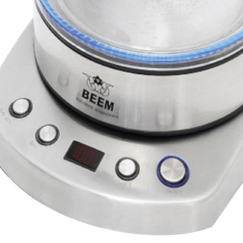 پایه ی دستگاه که دکمه های کنترلی روی آن قرار دارد، کارایی دستگاه را افزایش داده و درعین حال آسان میکند. از روی این پایه میتوان دما را تعیین کرد و دستگاه را در وضعیت جوش، گرم نگه دار یا خاموش قرارداد. قوری هم از جنس شیشه ی مقاوم به حرارت است که روی کتری قرار میگیرد و با داشتن توری استیل، امکان دم کردن چای و دم نوشها را ممکن میسازد؛