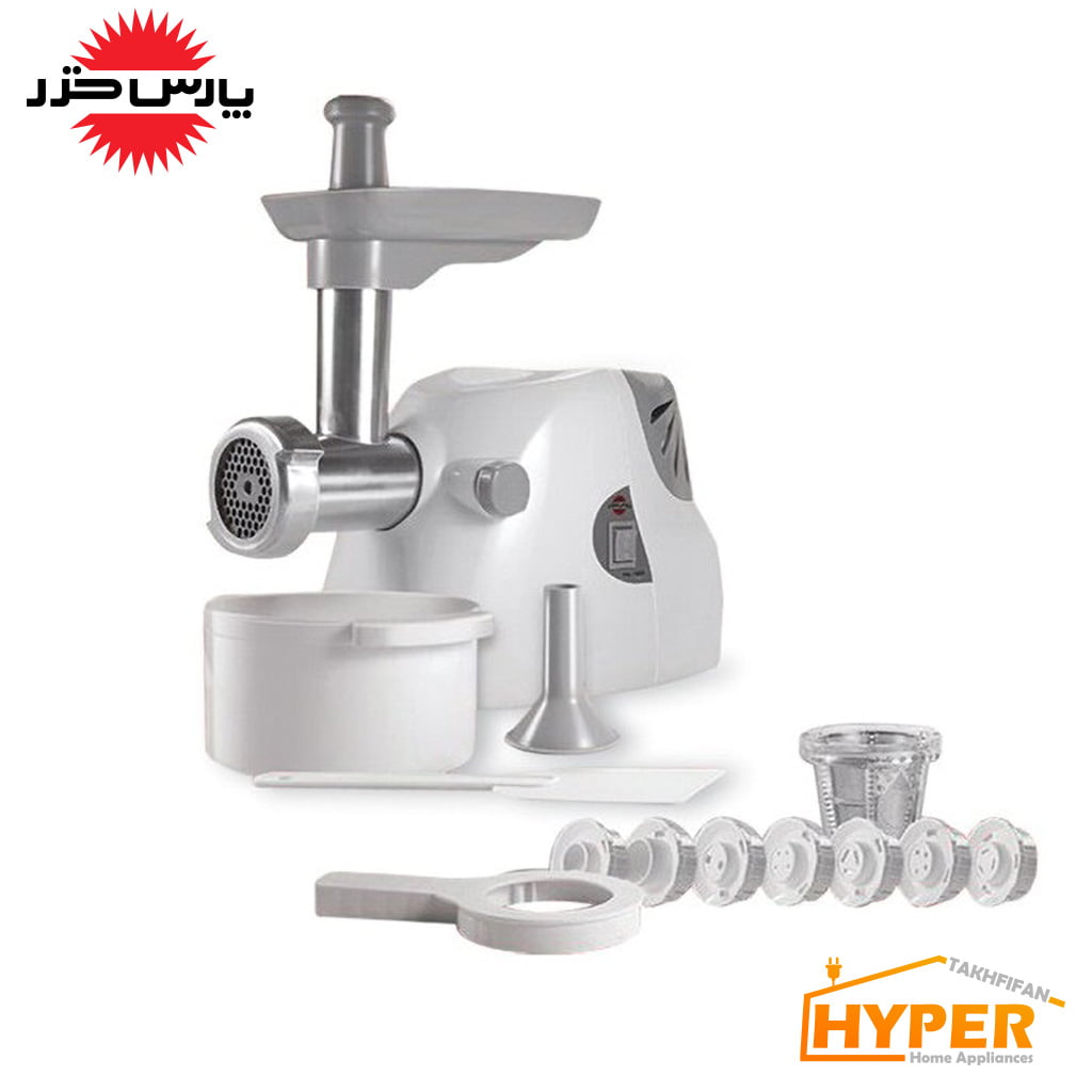 مجهز به کلید برگردان (Reverse) برای برگرداندن مواد غذایی باقیمانده در دستگاه – دارای محفظه نگهداری سیم و شبکه – دارای فیلتر جدا کننده آبمیوه، خرد کن و مخلوط کن – قابلیت آب گیری میوه های مختلف – قابلیت خرد کردن پیاز و سیب زمینی خام به صورت مجزا یا مخلوط – قابلیت خرد و مخلوط نمودن فرم های مختلف ماکارونی و رشته – دارای تیغه برشی (ریز و درشت) و ورقه ای جهت برش چیپسی مناسب برای رنده کردن سیب زمینی، هویج و … و سایر میوه های سفت – دارای تیغه برشی خردکن ریز – مناسب برای پوره کردن سیب زمینی پخته، تخم مرغ پخته، شلغم، گوجه فرنگی و هویج پخته |