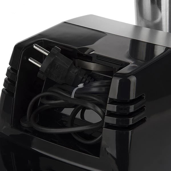 مجهز به کلید دور برگردان موتور (Revers) – صفحه نمایشگر – دارای ناودانی و سینی فلزی به همراه درپوش مخصوص سینی – دارای عایق کاری دوبل قطعات الکتریکی جهت ایمنی بیشتر – دارای محفظه نگهداری شبکه گوشت یا سبزی – دارای محفظه نگهداری سیم – دارای سینی بزرگ و جادار به همراه درپوش مخصوص شفاف – دو عدد شبکه مخصوص خرد کردن گوشت و سبزی – ظرف پلاستیکی جهت جمع آوری گوشت چرخ شده – دارای عایق کاری دوبل قطعات الکتریکی جهت ایمنی بیشتر – پایه ضد لغزش