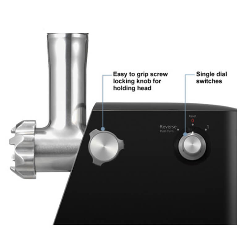 تک کاره – سینی بزرگ برای نگهدارنده مواد – اهرم دستی برای هدایت مواد – محفظه مخصوص لوازم جانبی – قابلیت شستشوی قطعات در ماشین ظرفشویی – کلید روشن / خاموش – محفظه برای جمع كردن سیم برق – مجهز به سیستم محافظت در برابر بار اضافه – لوله ناودانی (گلویی) استیل |