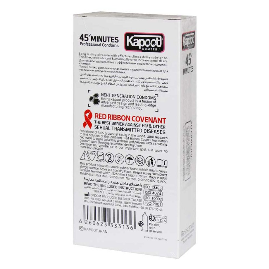 کاندوم کاپوت 45 دقیقه ای برای افرادی مناسب است که مشکل زودانزالی دارند یا می خواهند زمان لذت را به حداکثر برسانند. تست های کنترل کیفیت دقیق روی این محصول انجام شده تا ایمنی کامل در برابر بیماری های مقاربتی و بارداری ناخواسته تضمین شود. در مجموع، این کاندوم انتخابی عالی برای زوج هایی است که به دنبال رابطه ای طولانی، کنترل شده و پرهیجان هستند.