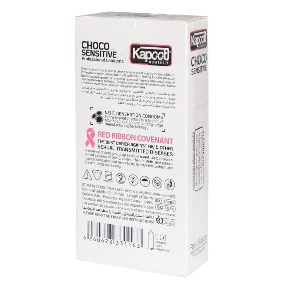 کاندوم کاپوت شکلاتی choco sensitive یکی از جذاب ترین محصولات برند Kapoot است که برای کسانی طراحی شده که به دنبال رابطه ای گرم، عاشقانه و خوش بو هستند. این مدل با رایحه طبیعی شکلات، حس لذت و صمیمیت را افزایش می دهد و تجربه ای خاص و متفاوت را رقم می زند.