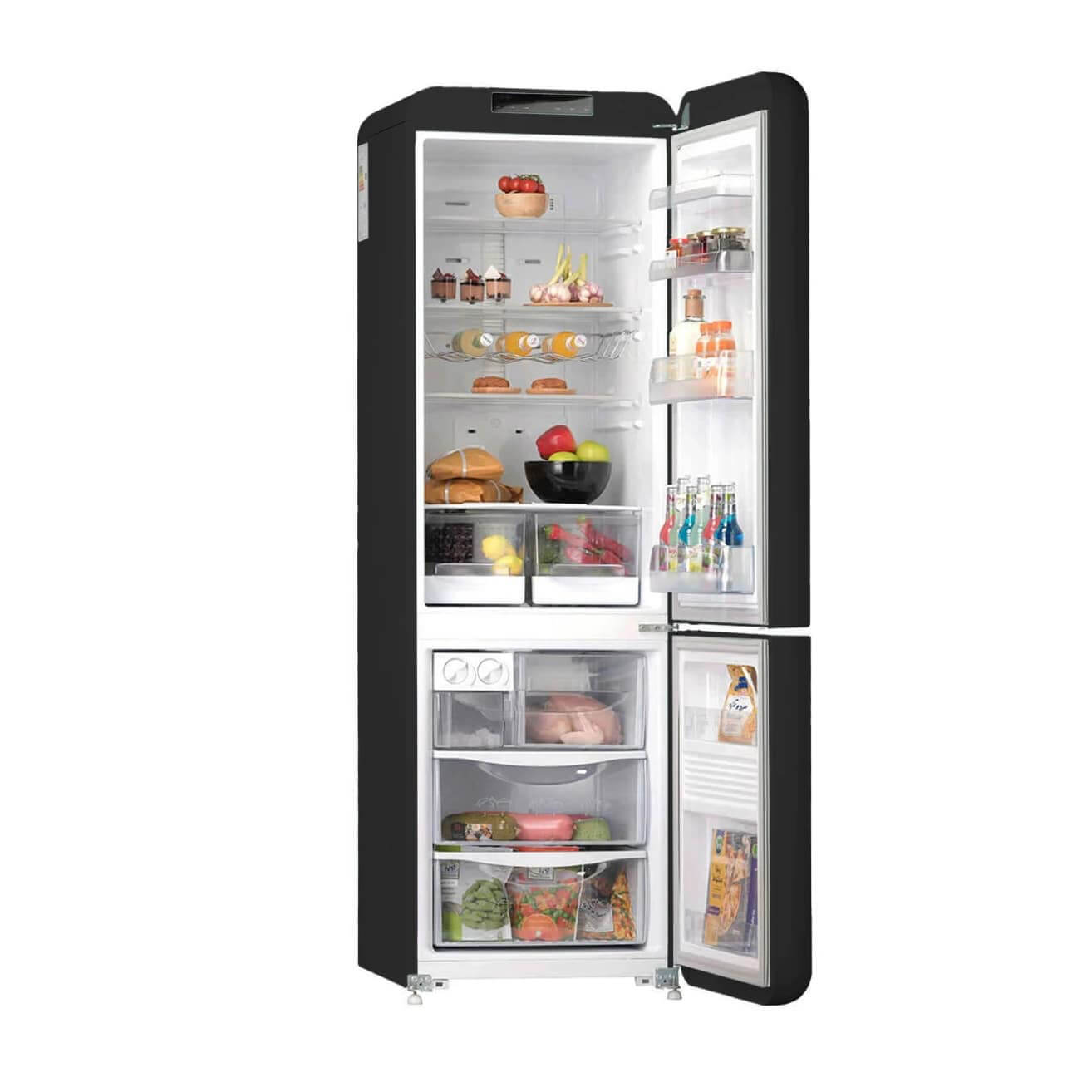 یخچال 230 لیتری – فریزر 77 لیتری – یخساز دستی و محفظه یخ – جا لبنیاتی و جا بطری – طبقات شیشه ای نشکن – پایه های قابل تنظیم و چرخدار – سیستم گردش هوای اجباری – سیستم گردش هوای چندگانه – دارای 4 طبقه، 2 کشو و 4 طبقه درب در یخچال – دارای 3 کشو و2 طبقه درب در فریزر – سیستم کاهش دهنده مصرف انرژی – کشوی میوه و سبزیجات تازه – سيستم كنترل ديجيتال مجهز به نمايشگر تاچ پنل – سیستم کارکرد مجزای فریزر |