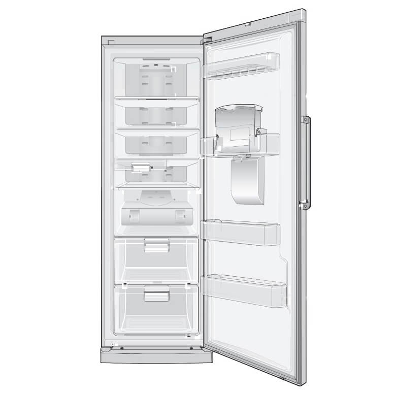 دارای 2 طبقه محفظه + 2 طبقه درب + 5 کشو فریزر