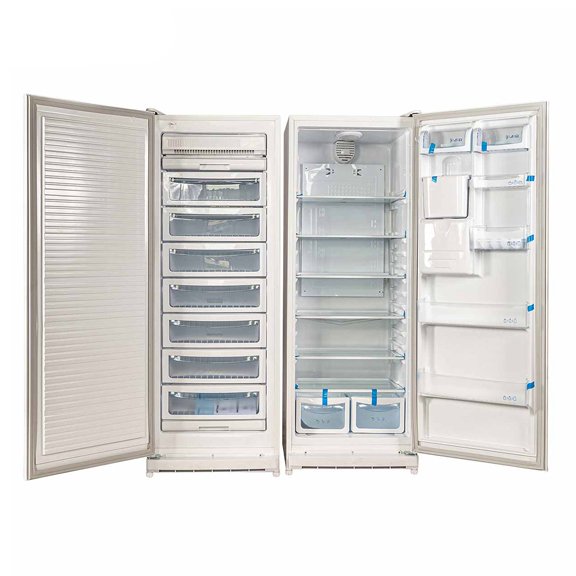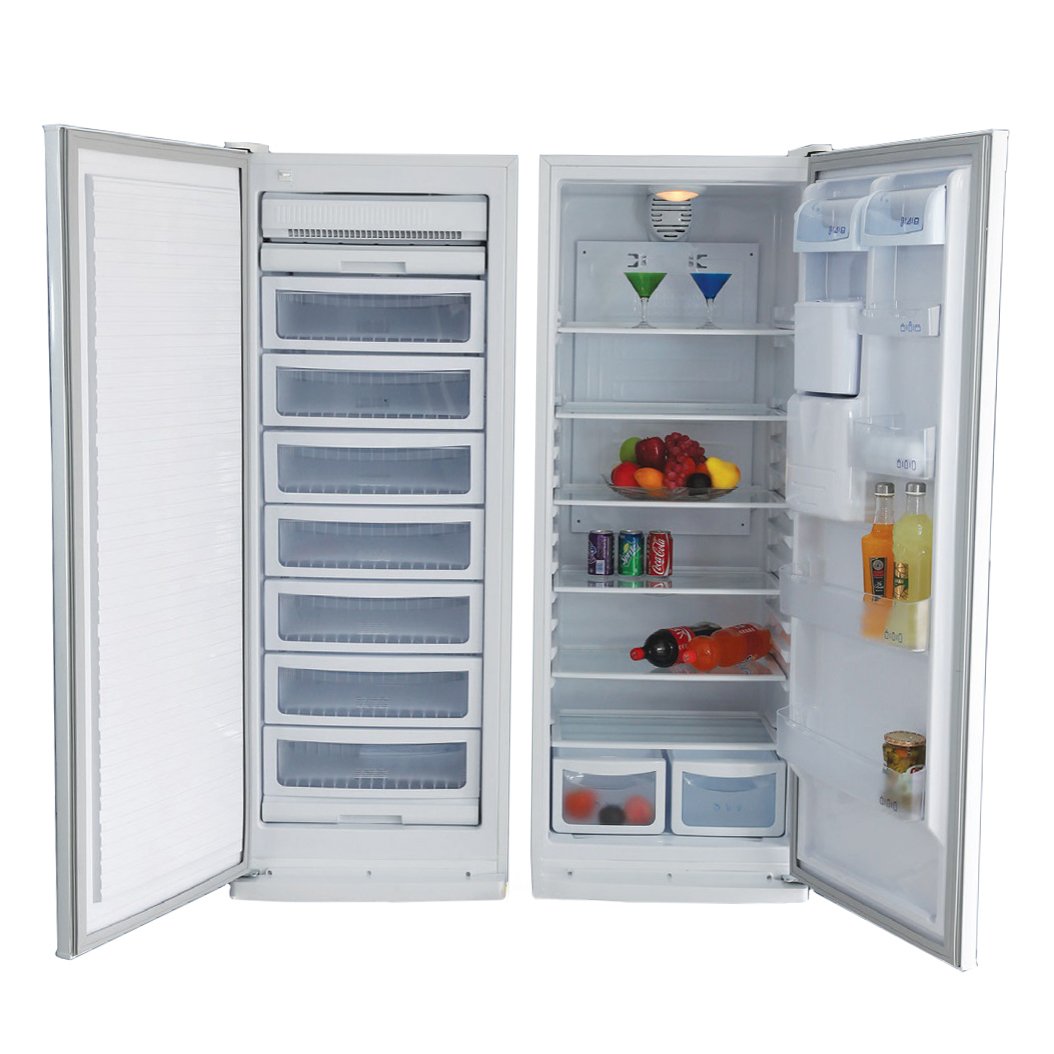 یخچال فریزر دوقلو یخساران D 8001-D 8005 W مجهز به سیستم آبریز نیمه اتومات و سیستم اخطار باز ماندن درب است. ظرفیت کل این محصول 32 فوت یا 742 لیتر است.