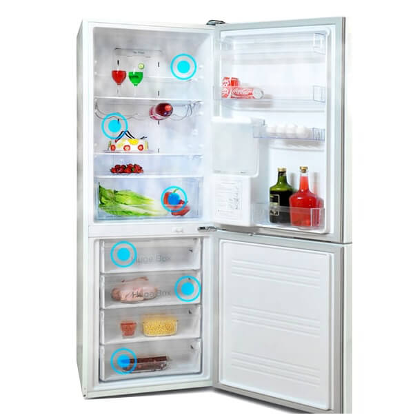 در یخچال فریزر نقره ای دوو مدل BM-10S شش عدد سنسور تعبیه شده که می تواند دمای داخلی را بطور دقیق اندازه گیری نماید. با وجود سیستم های کنترل سرمایش الکترونیک Digital Cooling و سامانه گردش هوای چندگانه، دمای مورد نیاز دستگاه تشخیص داده شده و بعد از تولید، از منافذ موجود در دیواره های دستگاه، وارد طبقات شده و در سراسر یخچال به گردش در آمده و نهایتا موجب یکسان سازی دما خواهد شد.