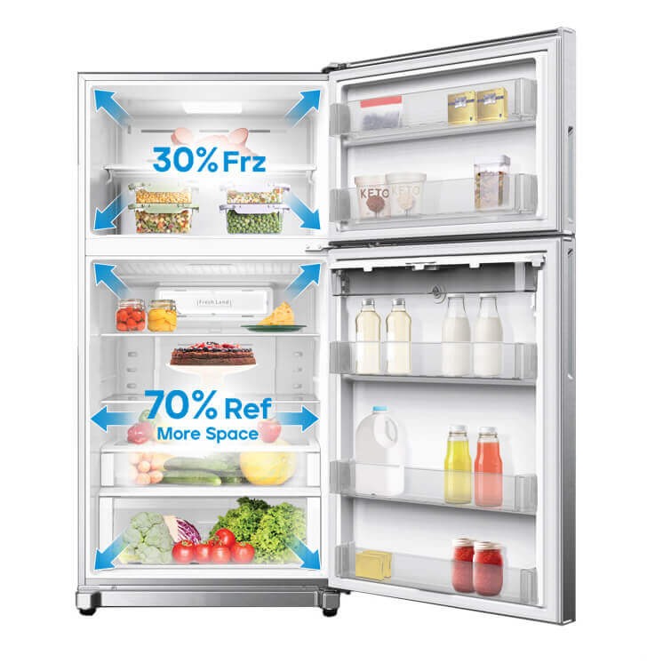 یخچال فریزر هوشمند دوو مدل TMi-30GW دارای کابین فریزر با گنجایش 120 لیتر در قسمت بالا و کابین یخچال با گنجایش 383 لیتر در قسمت پایین محصول است و با 2 پاکت درب و 2 طبقه در فریزر و 3 پاکت درب، 3 طبقه و 2 کشو در یخچال، فضای بسیار مناسبی را در اختیار شما برای نگهداری انواع محصولات غذایی، نوشیدنی، میوه و سبزیجات قرار می دهد. البته وجود سیستم گردش هوای سه بعدی با گردش هوای خنک و یکنواخت سازی آن در بین تمام طبقات، به ماندگاری بالای مواد غذایی داخل یخچال کمک بسیاری می کند.