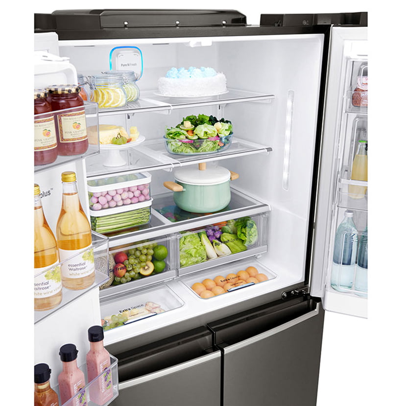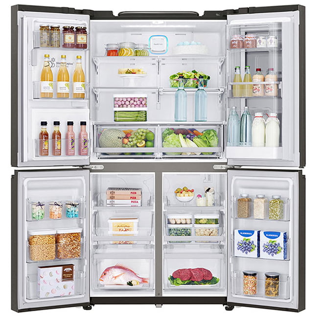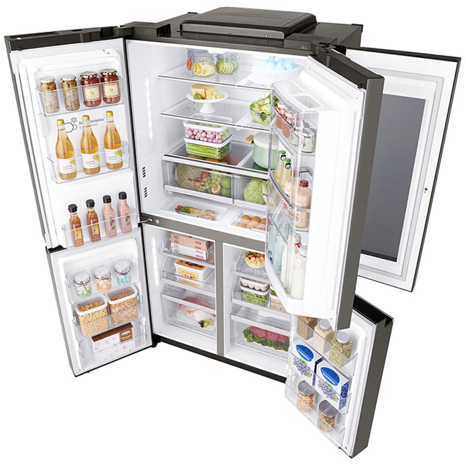 فناوری ™SmartThinQ – فیلتر بهداشتی +Hygiene Fresh – قابلیت مشاهده مواد غذایی درون یخچال فقط با ضربه زدن به پنل شیشه ای براق درب – تکنولوژی فیلتر هوا – دارای صفحه نمایش Instaview – سیستم جریان هوای چند گانه – کشوی نگهدارنده میوه و سبزیجات – یخ ساز باریک داخل درب