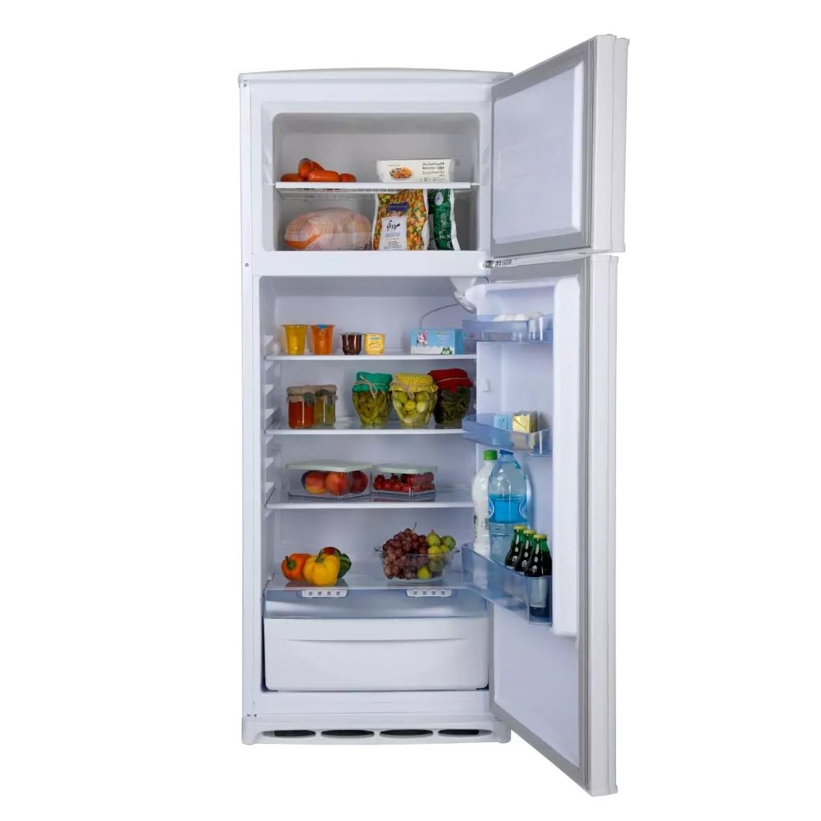 یخچال 220 لیتری – فریزر 70 لیتری – برفک زدایی اتوماتیک (Auto Defrost) – کندانسور آشکار – دارای 4 طبقه، 1 کشو و 3 پاکت درب در یخچال – دارای 2 طبقه فریزر