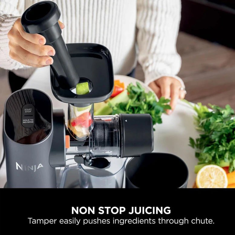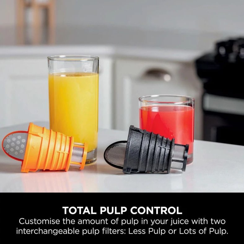 عصاره گیر نینجا JC151UK با تکنولوژی پرس سرد، توان 150 وات، فیلتر های قابل تعویض و عملکرد کم صدا، آب میوه ای تازه، غلیظ و مغذی تولید می کند.